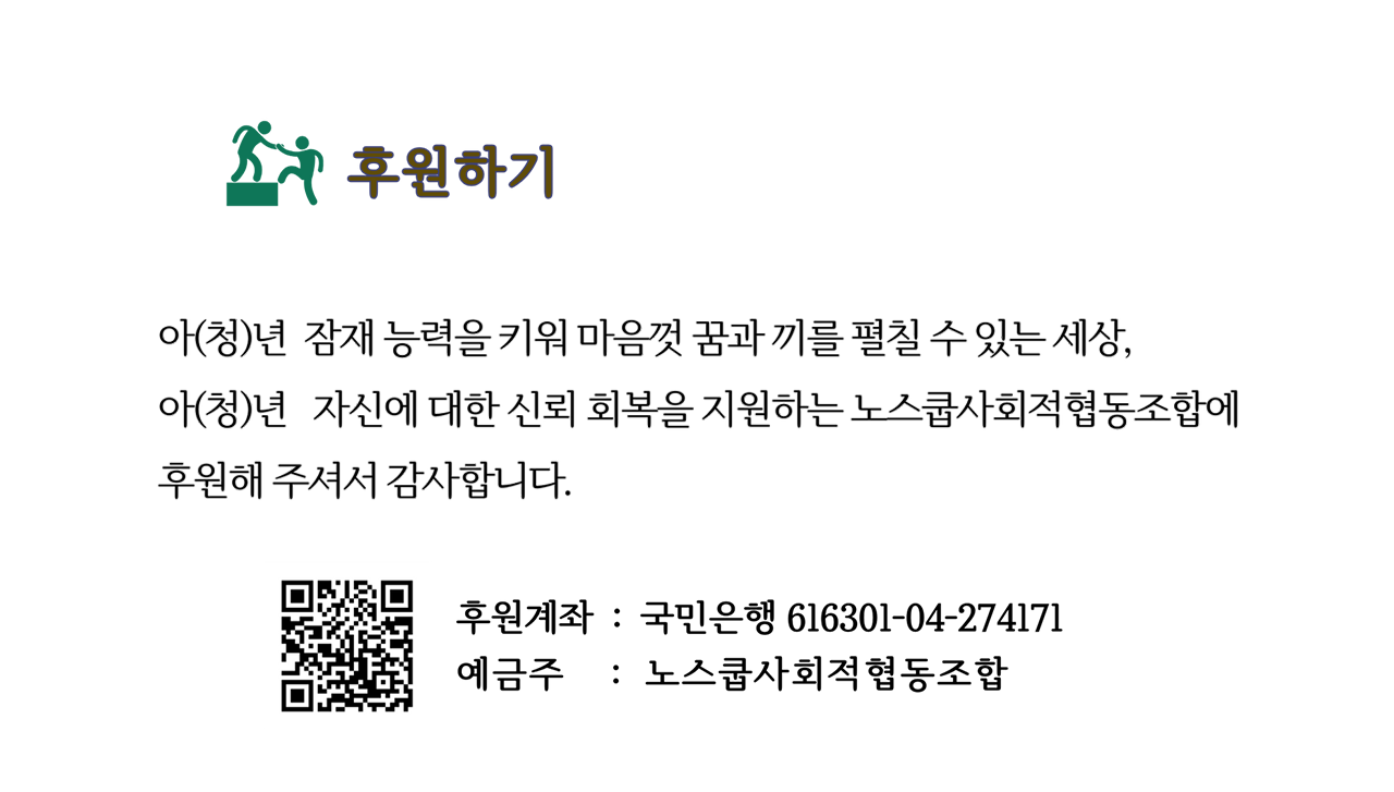 copyright(c) 2024 노스쿱사회적협동조합. All rights reserved.
